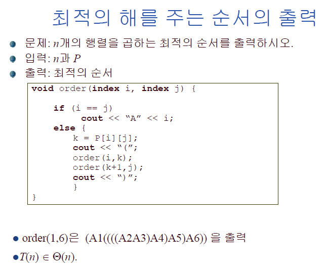 이 알고리즘은, 분할정복방법으로도 만들 수 있고 동적계획법으로도 만들 수 있습니다.