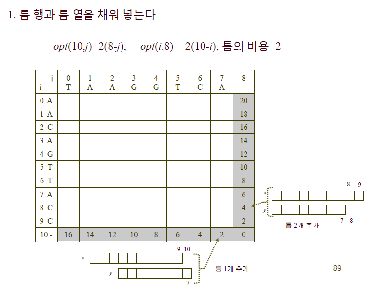 이번 알고리즘은 불일치, 혹은 비어있는 DNA 쌍에 점수(비용)를 부여하는 알고리즘입니다.
