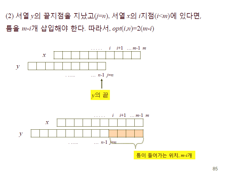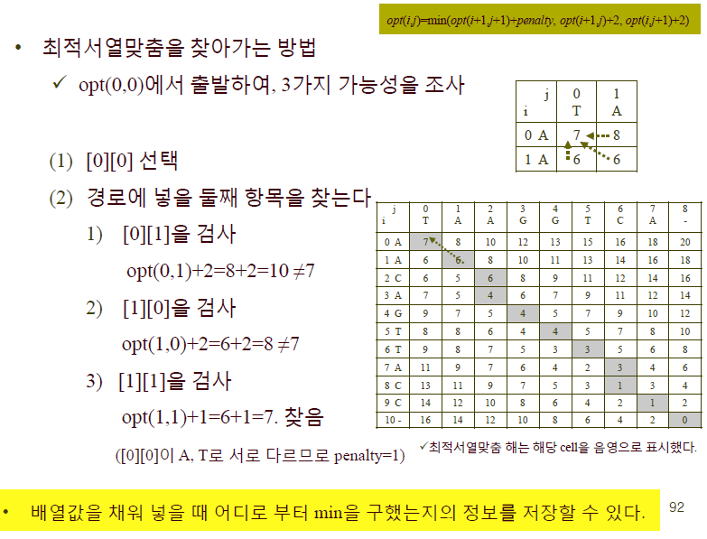 opt_val = min(opt(i+1,j+1)+penalty, opt(i+1,j)+2, opt(i,j+1)+2)