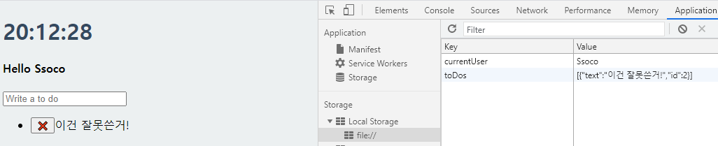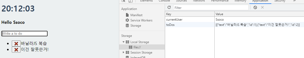 본 내용은 앞에서 만든 내용들의 복습과 간단한 응용수준이지만, toDoObj를 통해 객체를 생성한 부분은 클론코딩 과정에서는 처음으로 등장한 부분이라 주목할 필요가 있습니다.