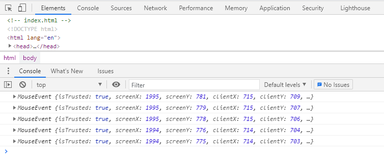 먼저 캔버스 위에 마우스가 어느 위치에 있는지를 알아야 합니다.