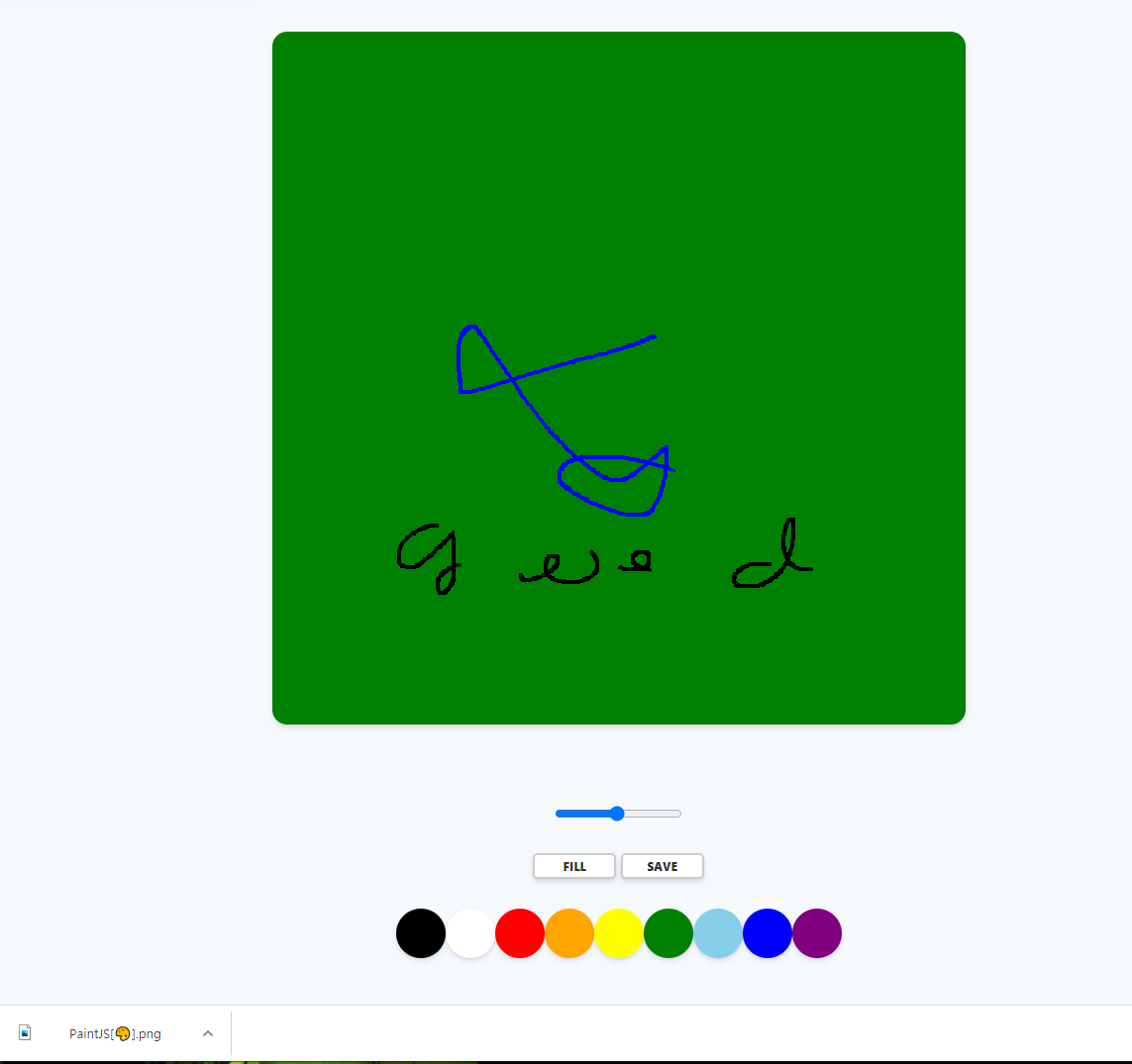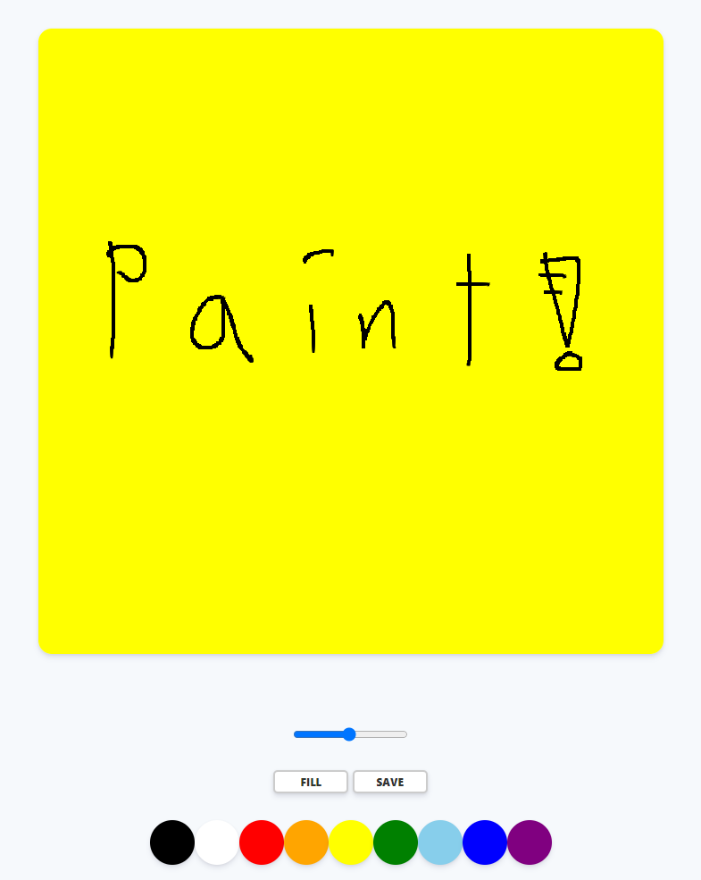 이것으로 강의를 모두 수강했습니다! 아쉬운 부분들이 몇 가지 있지만 (지우개 기능, 현재 선택한 색깔을 나타내는 기능, fill에서 특정 부분만 채우기, 마우스 클릭한 채로 나갔다 들어와도 그려지게 하기 등등) 이 부분들은 저 혼자서 공부해 나가면서 개선해 볼 생각입니다!