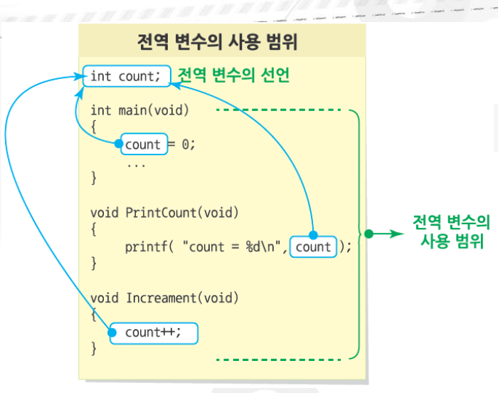 전역변수는 프로그램 전체에서 사용될 수 있는 변수입니다.