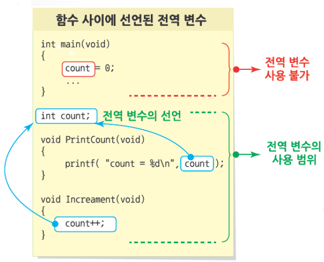 전역변수의 선언문 다음에 정의된 함수에서만 전역변수를 사용할 수 있습니다.