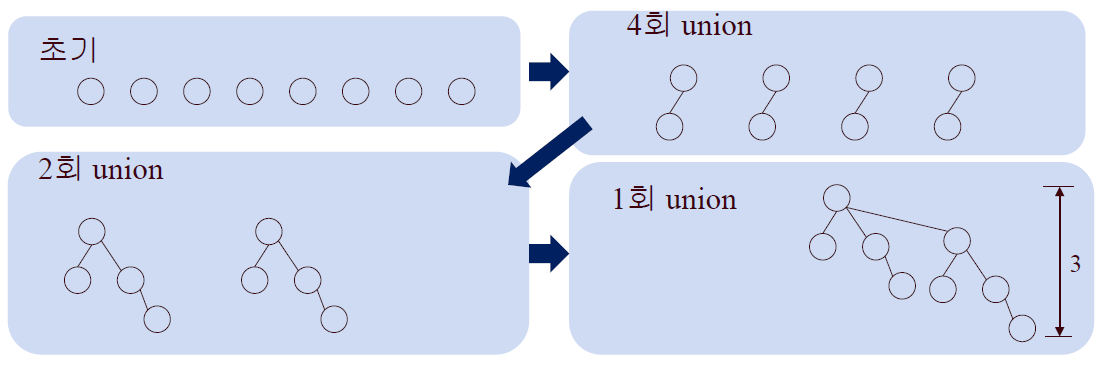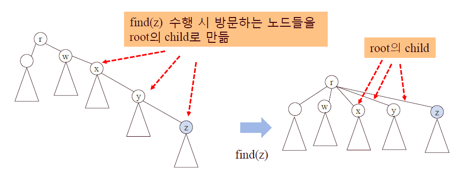 이렇게 트리의 높이를 낮추면 find를 더 빠르게 수행할 수 있게 됩니다.