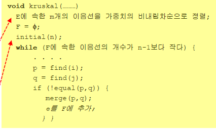 각 에지들을 정렬하는데 O(m lg m)이 걸렸고 (2번째 줄)