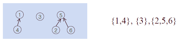 집합의 이름은 root원소이고, 각 원소는 부모로 향하는 포인터를 가집니다.