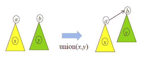 union(x,y)는 find(x)원소를 find(y)의 child node로 만듭니다.