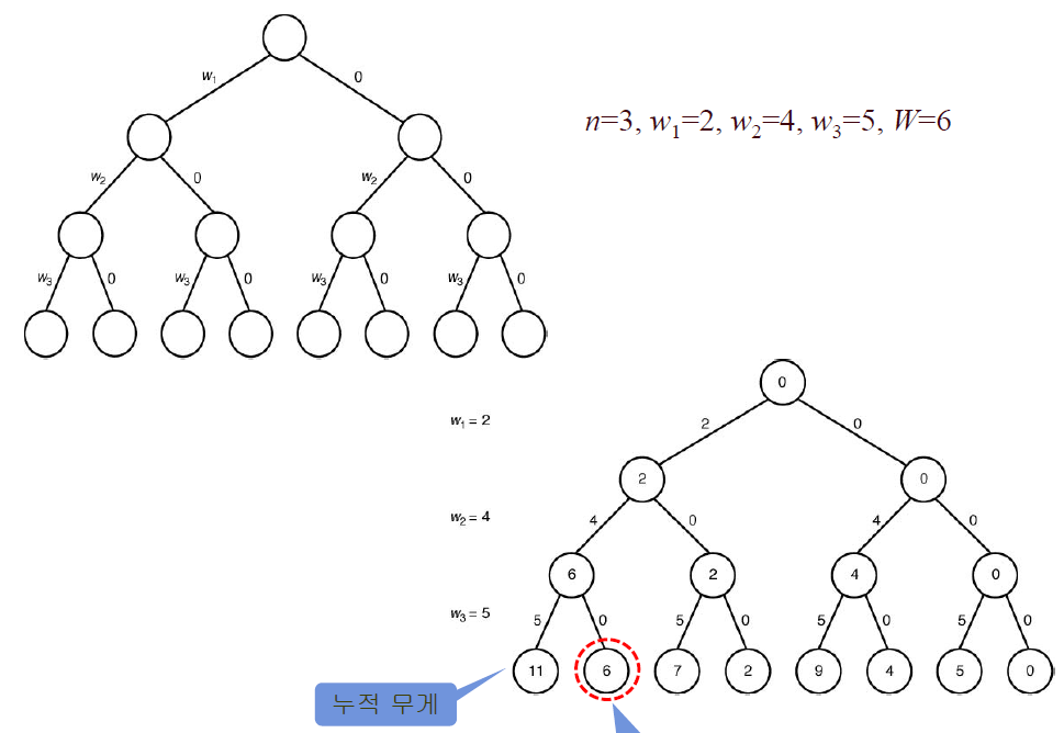 weight + w_(i+1) > W (if weight != W) -> 다음꺼 더하면 W를 초과하니까 꽝!
