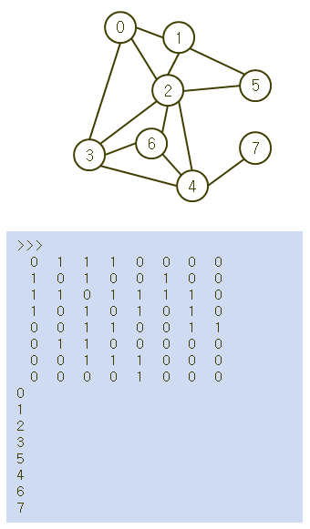 if a[v][u] == 1 and u not in visited: # 아직 방문하지 않은 노드중에 연결된 것(a[v][u] == 1)이 있다면