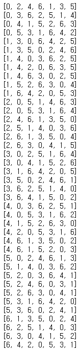 W=[[0,1,1,1],[1,0,1,0],[1,1,0,1],[1,0,1,0]]