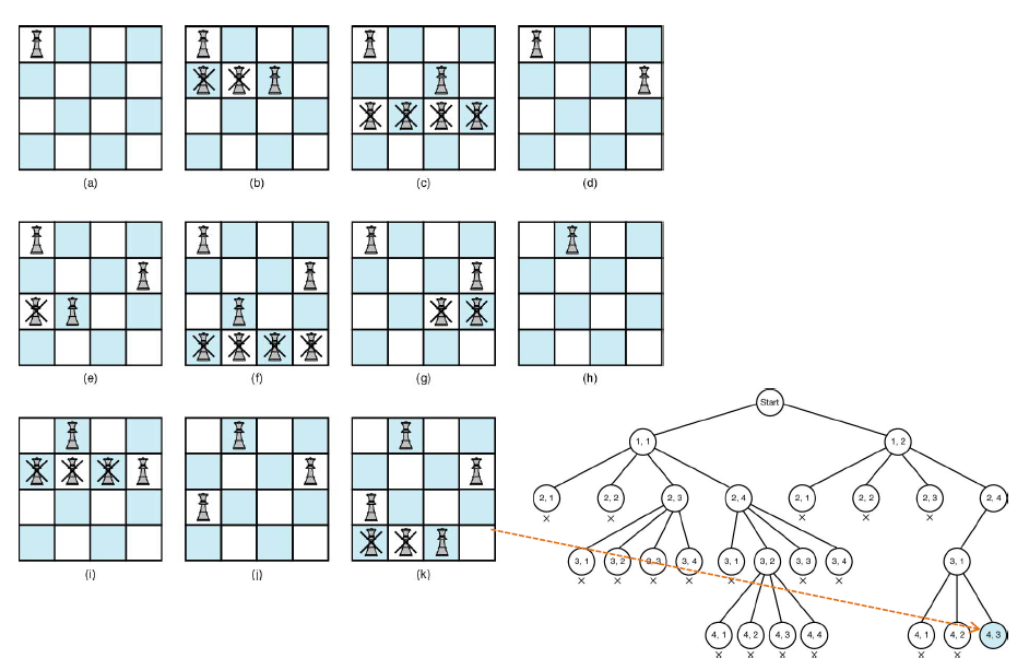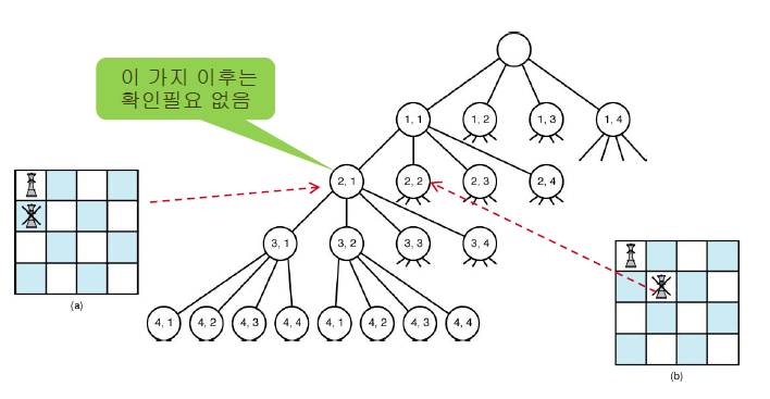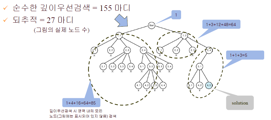 이 알고리즘은 게임, 바둑 등에서 다음 수를 찾을 때 이렇게 하면 안되겠다 싶을때 다시 돌아오는 그런 과정을 말하는 것입니다.