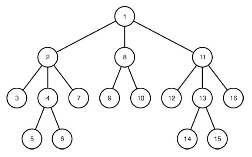 preorder의 예시인 DFS(깊이우선탐색)을 복습해보면, root를 먼저 방문한 뒤 그 마디의 모든 후손마디를 차례대로 방문합니다. (마디는 노드와 같습니다)