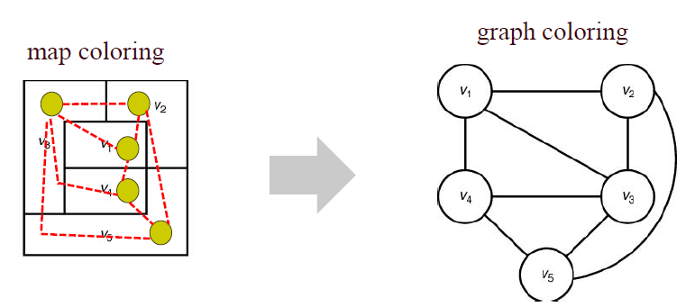 어렸을 때 수학문제 중에서 인접한 나라에 겹치지 않도록 지도에 색칠하는 문제가 있었던게 어렴풋이 기억에 남습니다.