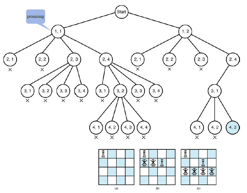 - 만약 그 마디가 유망하지 않다면(더 이상 검색의 의미가 없다면) 그 마디의 부모 마디로 돌아가서 검색을 계속합니다.