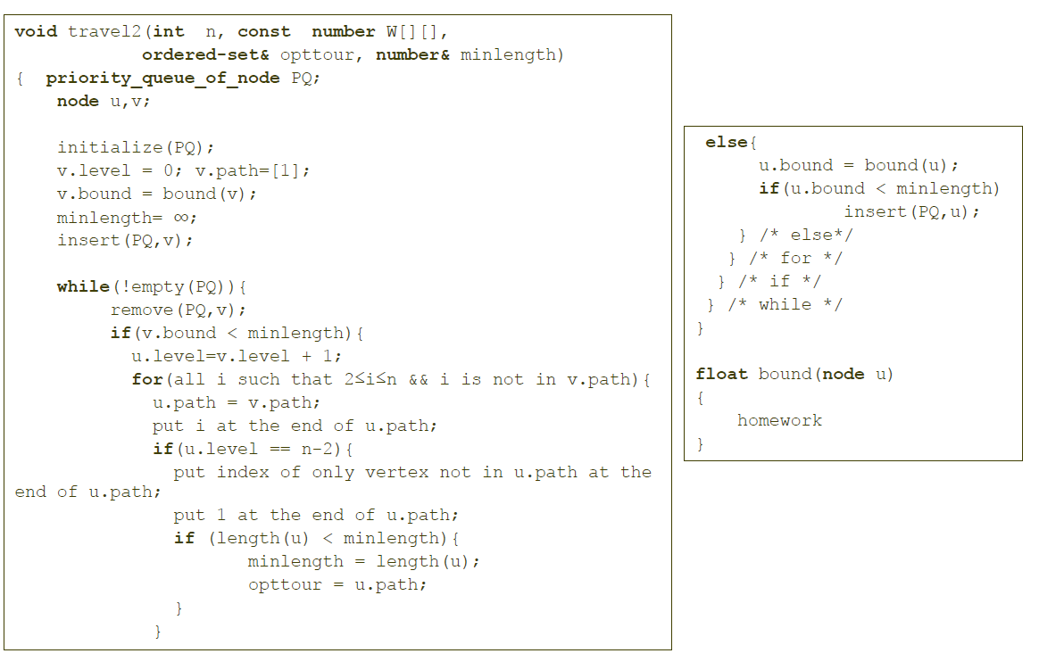 아래 코드는 외판원 문제에 대한 수도코드입니다.