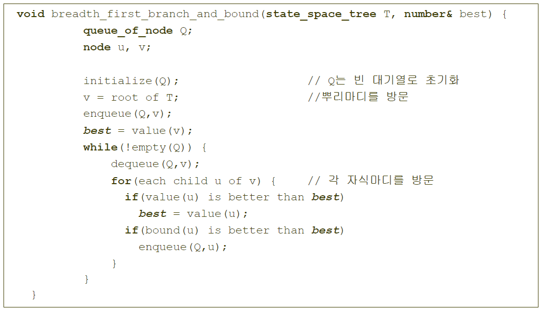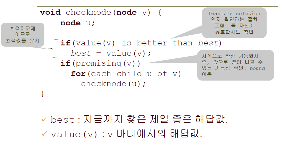아래는 최적화 문제를 풀기 위한 되추적 알고리즘 수도코드입니다.