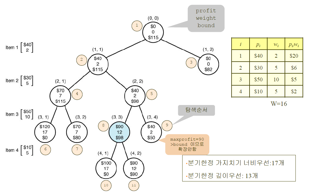 되추적은 특정 답을 뽑아내기 위한 방법이었다면, 분기한정법은 최적의 해를 구하는 문제에 사용할 수 있는 방법입니다.
