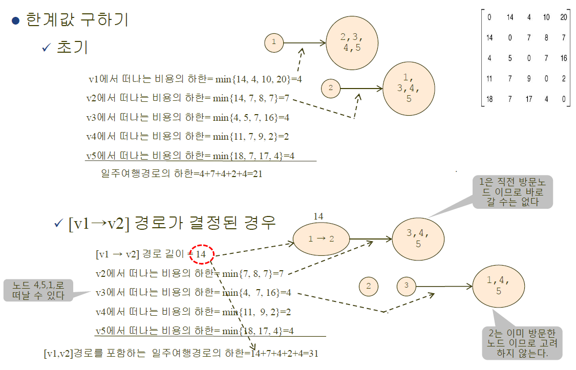 먼저 [1,2],...[1,5] 까지의 경로의 bound를 계산합니다.