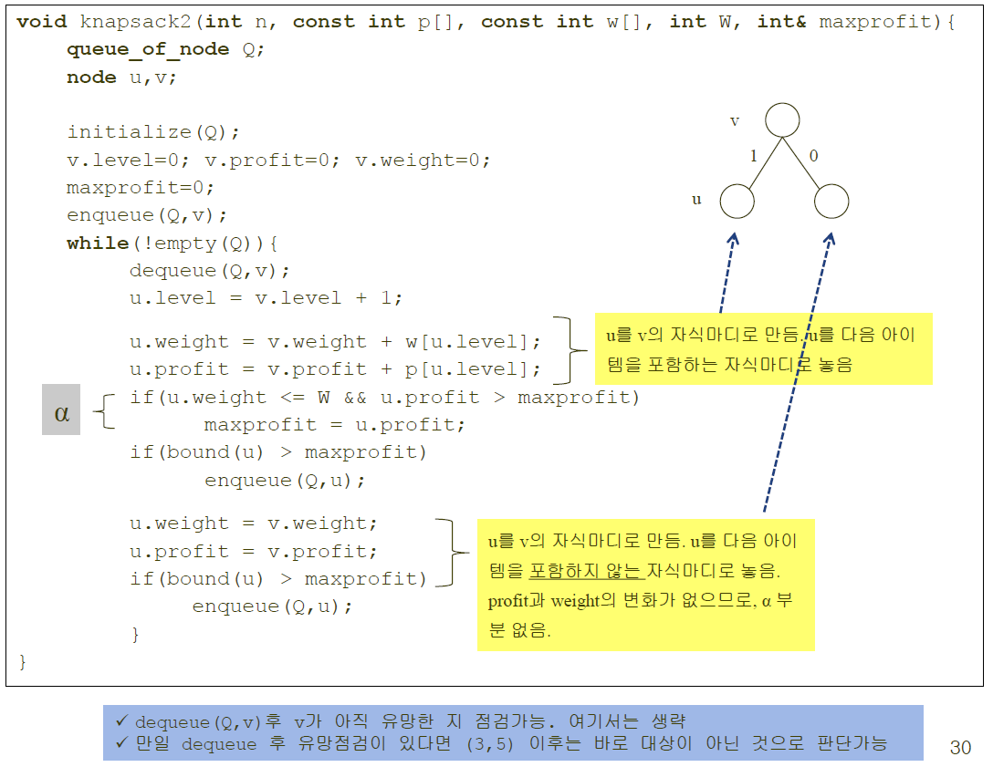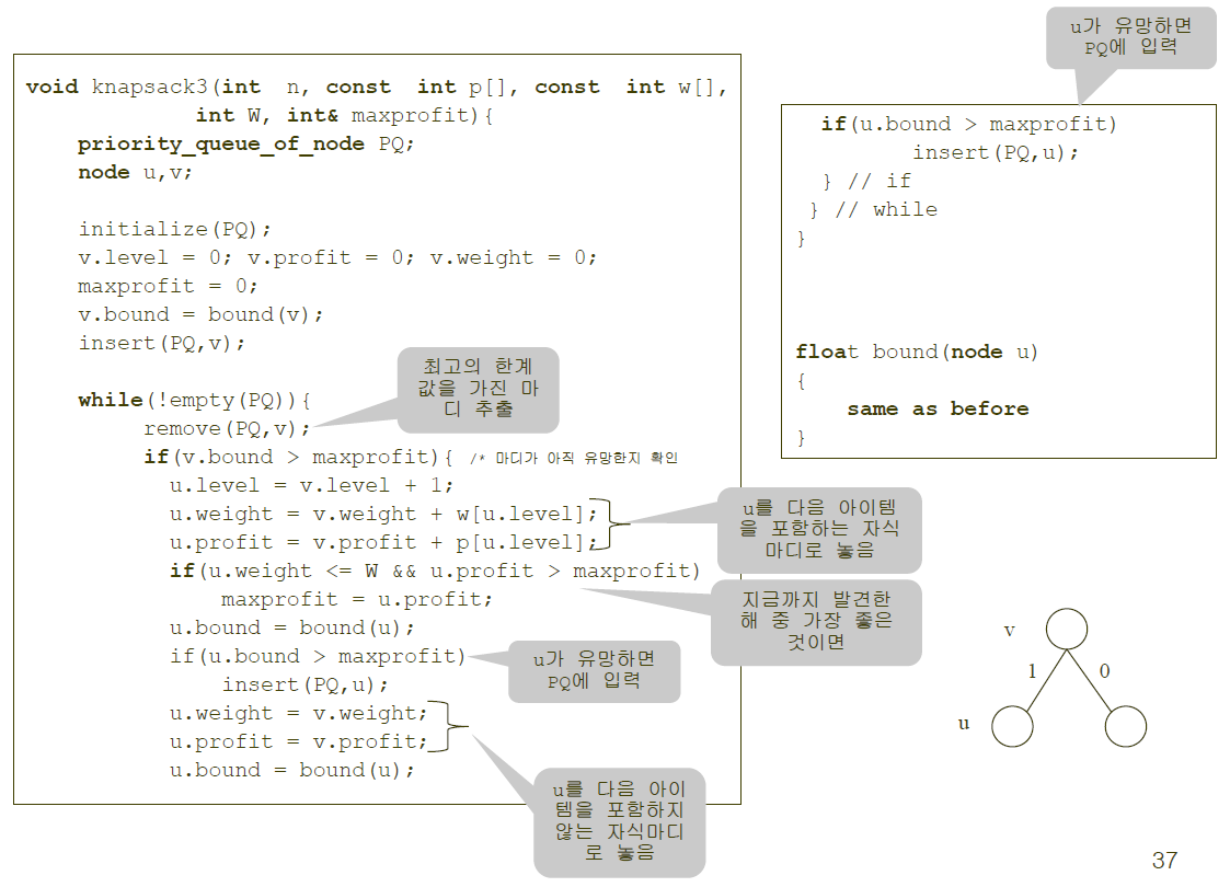 그러면 bound <=maxprofit이면 수준 i에 있는 마디는 유망하지 않습니다.